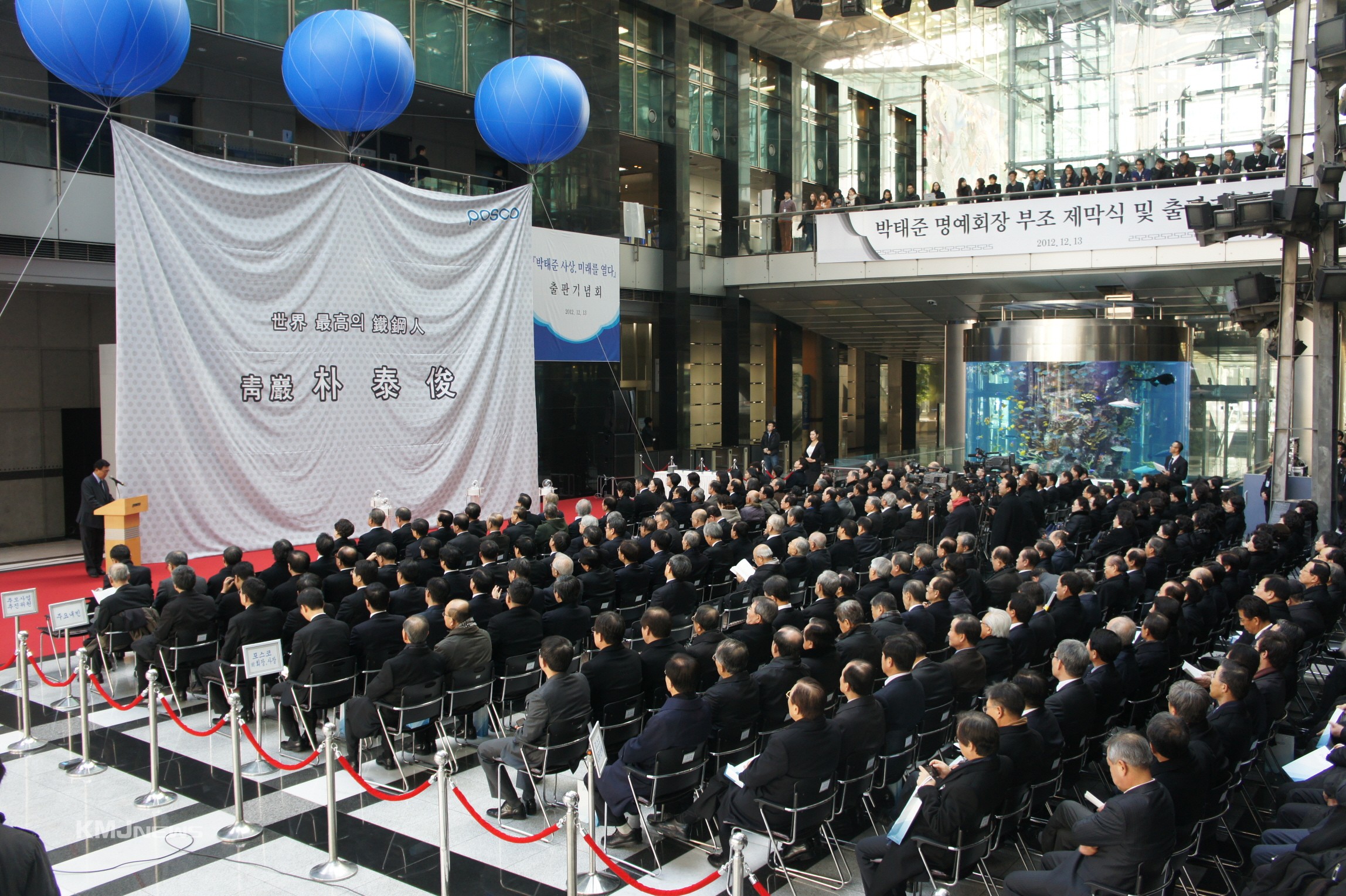포스코(회장 정준양)는 13일 오후 포스코센터에서 고(故) 박태준 명예회장 1주기 추모행사의 일환으로 부조 제막식과 '박태준 사상, 미래를 열다'라는 서적 출판기념회를 개최했다.