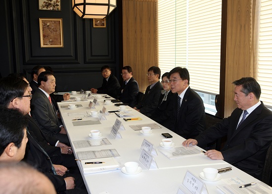 ▲ 조달청 주최로 열린 '민관협력을 위한 비철금속업체 간담회'에서 강호인 조달청장(사진 오른쪽 두번째)을 비롯, 비철 금속업계 대표 관계자들이 의견을 조율하고 있다.