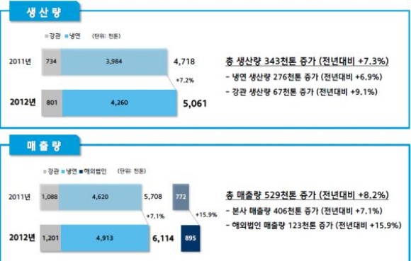 한편, 판매량은 전년비 8.2% 증가한 491만3,000톤을 기록했다. 이 중 본사 판매량은 전년비 7.1% 증가한 491만3,000톤을 해외법인 판매량은 전년비 15.9% 증가한 120만1,000톤을 기록했다.