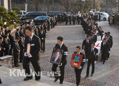 ▲ 영결식장으로 입장하는 이운형 회장 운구 행렬.