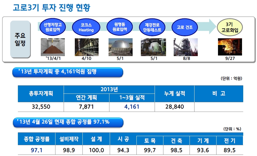 (현대제철IR) 고로 3기 현재 공정률 97.1%