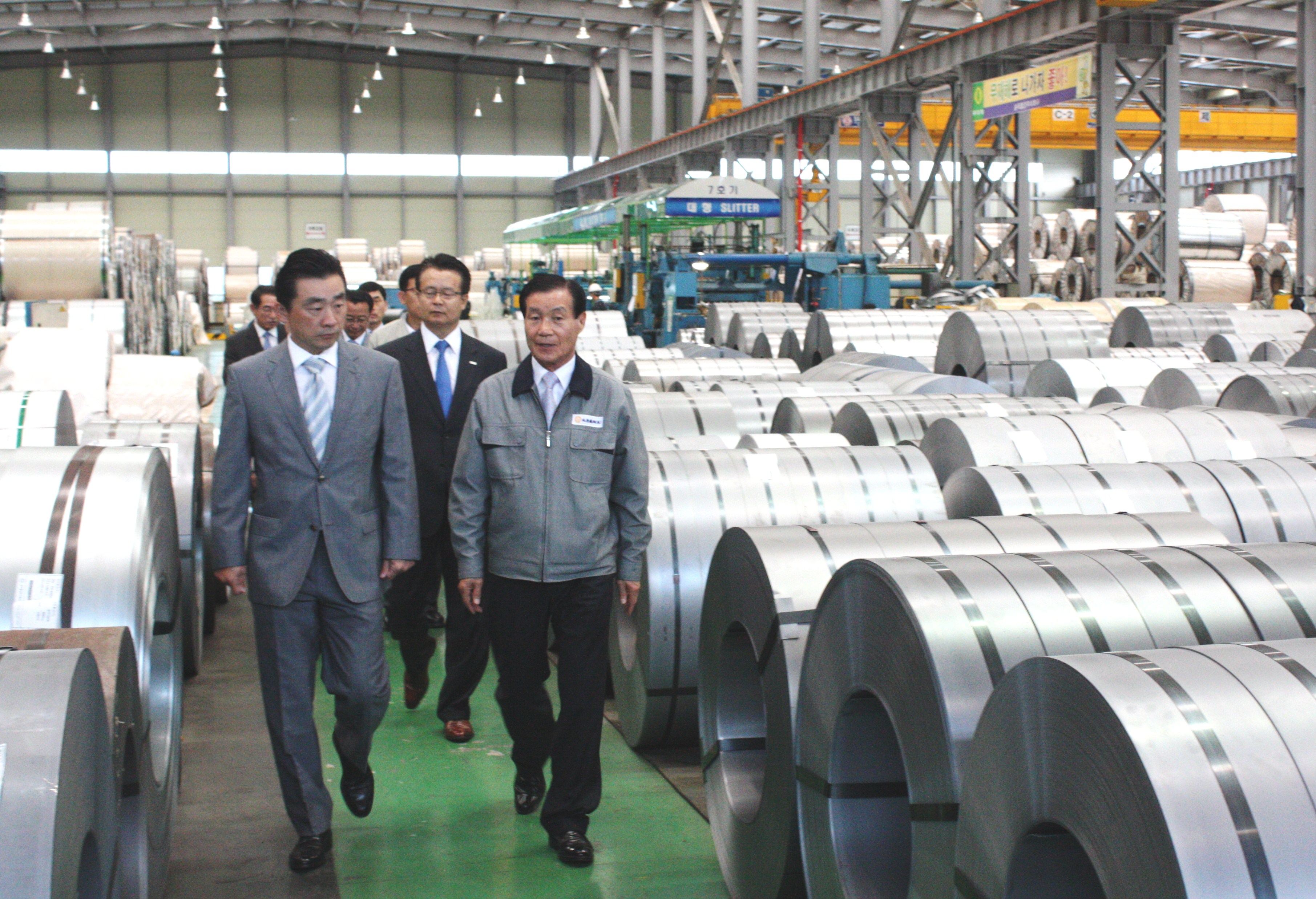 신성재 사장과 영업담당 임원 및 팀장은 12일 충남 아산에 위치한 자사 스틸서비스센터 순덕철강을 방문해 시황을 점검하고 현장의 목소리를 듣는 시간을 가졌다.