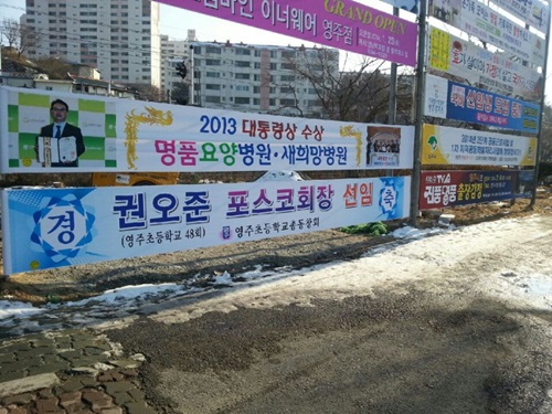 포스코 권오준 사장이 차기회장 후보로 선정되면서 23일 고향 영주에는 동문들의 축하 현수막이 내걸렸다. 권오준 회장 후보는 경북 영주에서 태어나 영주초등학교(48회), 영주중학교(14회)를 졸업했다. 이진욱 jwlee@snmnews.com 다른 기사 보기 관련기사 포스코 올해 첫 정기이사회...권오준 내정자 '첫 선' 저작권자 © 철강금속신문 무단전재 및 재배포 금지