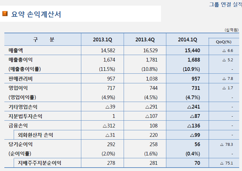 포스코(회장 권오준)는 24일 콘퍼런스콜을 통한 기업설명회를 열고 올해 1분기 요약 손익계산서(그룹연결실적)를 공개했다. 박재철 parkjc@snmnews.com 다른 기사 보기 관련기사 (포스코 IR 2014년 1분기) 1분기 영업益 개선 저작권자 © 철강금속신문 무단전재 및 재배포 금지