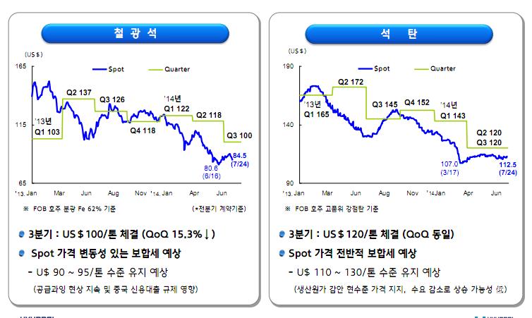 3분기 철광석과 석탄 등 원료가격은 전반적으로 보합세를 유지할 것으로 보인다.
