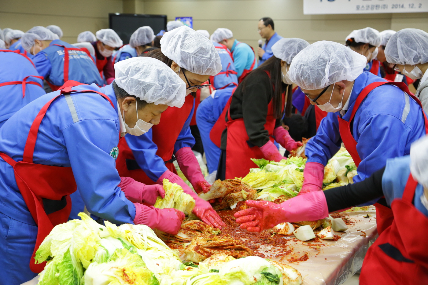 포스코강판은 지난해에 이어 올해도 대송면 부녀회가 재배하고 준비한 배추 600포기와 무 200개를 지원받아 김장을 담갔으며 이를 통해 지역 협력과 상생과 나눔을 실천하고 있다.