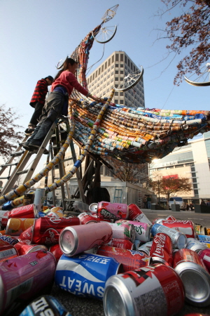 대구 중구(구청장 윤순영)는 3일 오후 대우빌딩 앞에서 폐기물 감량과 자원 재활용, 저탄소 녹색성장생활 실천문화 확산을 위해 알루미늄 캔과 자전거 휠 등을 이용해 만든 ‘친환경 트리’ 점등식을 가진다.