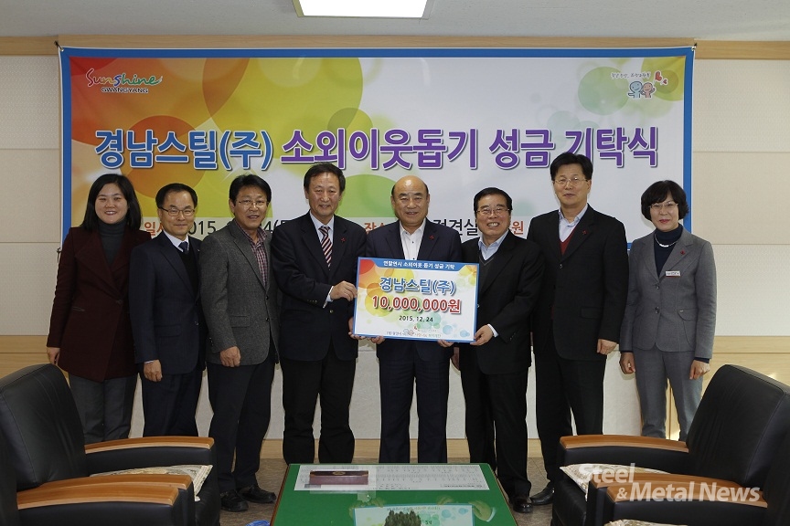 포스코 가공센터 경남스틸(회장 최충경)는 24일 오후 2시 광양시청 시장 접견실에서 연말을 맞아 성금 1,000만원을 (재)광양시사랑나눔복지재단(이사장 문승표)에 전달했다.