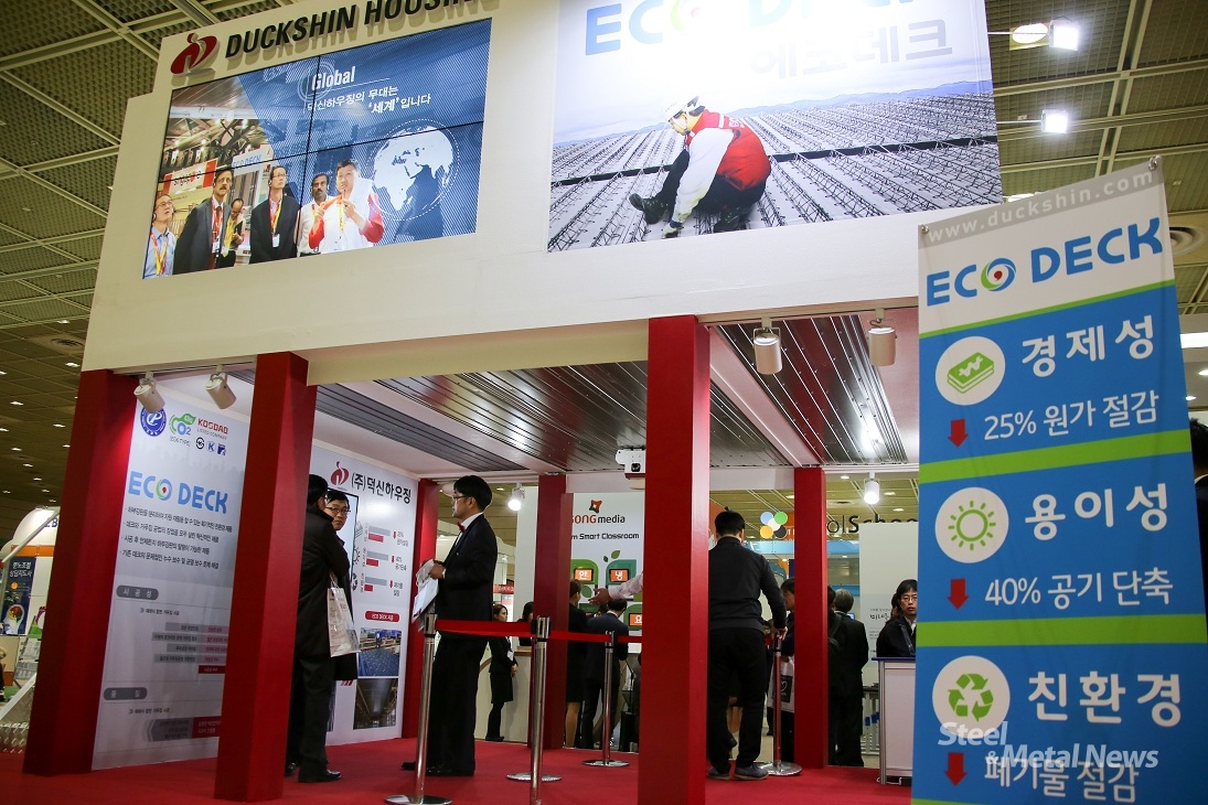 덕신하우징은 이번 전시회에서 주력 제품인 친환경 탈형 데크플레이트 ‘에코데크’와 세계 최초 건설 현장용 로봇 ‘에코봇’ 등을 전시한다. 학교 시설 공사 시 건물의 내구성, 구조적 안정성 향상에 기여하겠다는 취지다.