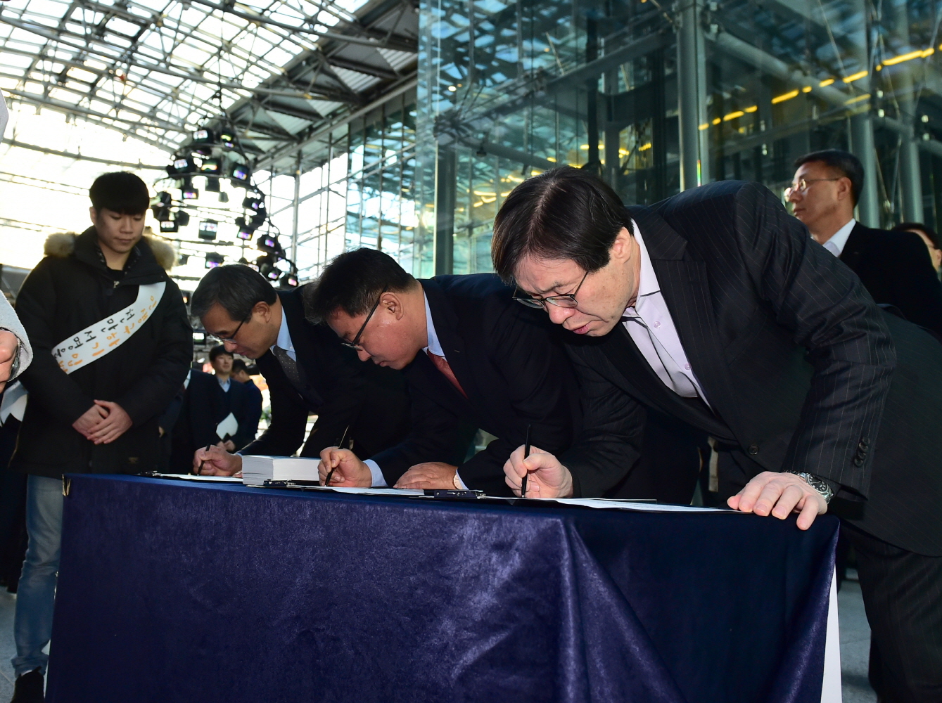 이날 서명대는 포스코센터 외에 포항제철소 3곳, 광양제철소 2곳에도 포항상공회의소와 광양상공회의소의 지원으로 각각 설치됐다.