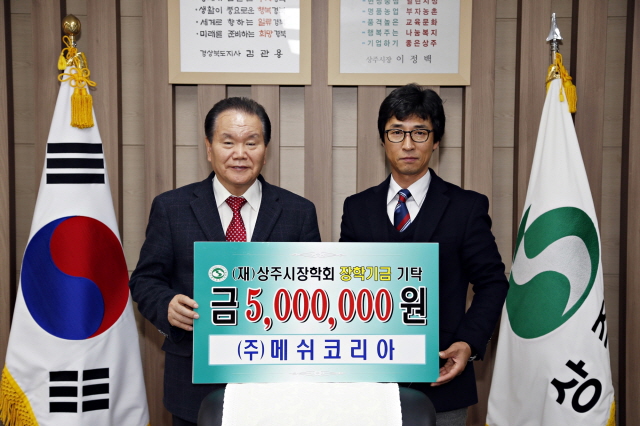 ㈜메쉬코리아(대표이사 배복순)가 지역인재 육성을 위해 장학금 500만원을 최근 기탁했다.