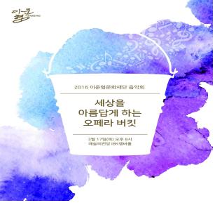<’2016 이운형문화재단 음악회 – 세상을 아름답게 하는 오페라 버킷>이 오는 17일(목) 오후 8시 예술의전당 IBK챔버홀에서 개최된다. 본 행사는 오랜 시간 한결같이 오페라를 사랑하고 후원해 온 세아그룹 故 이운형 회장의 마음을 담아 (재)이운형문화재단에서 준비한 두 번째 정기음악회이다.