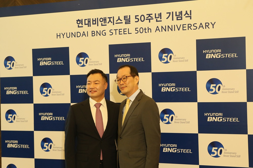 ▲ 현대비앤지스틸 정일선 대표와 포스코 스테인리스 마케팅실장 김광수 상무