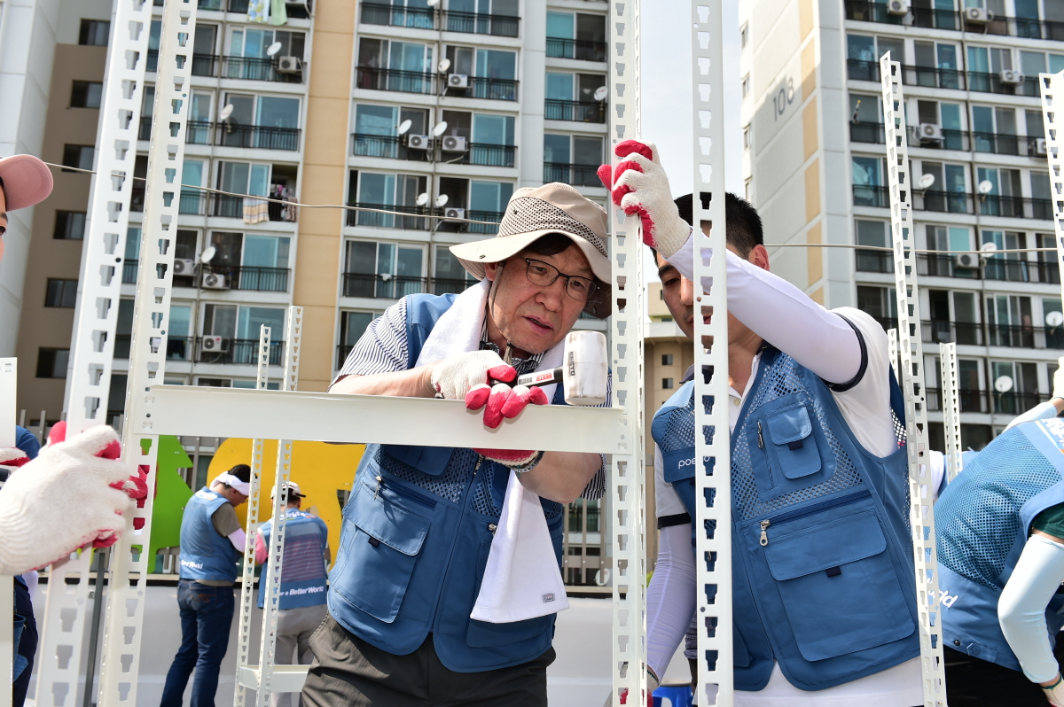 ‘철(steel)든 나눔’이라는 슬로건 아래 진행된 이번 봉사활동에는 권 회장을 비롯해 포스코와 포스코휴먼스 임직원 50여 명이 참여해 포스코 업(業)의 특성을 살려 철을 활용해 나눔의 의미를 전했다.