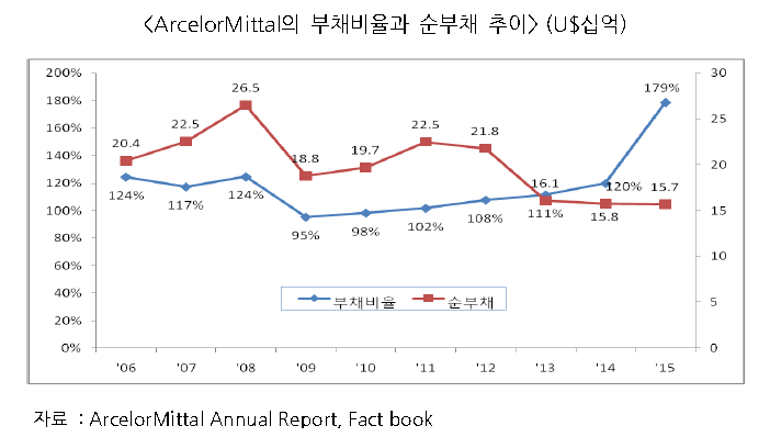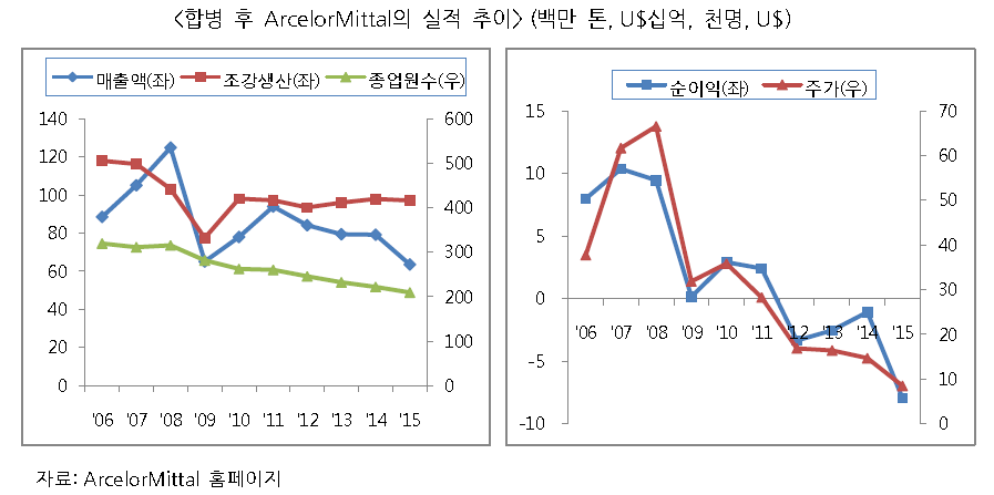 하지만 2008년 이후 사업규모가 큰 미국과 유럽에서 금융위기와 재정 위기가 잇따르면서 아셀로미탈의 실적은 2012년 이후 4년 연속 순적자를 기록할 정도로 크게 악화됐다.