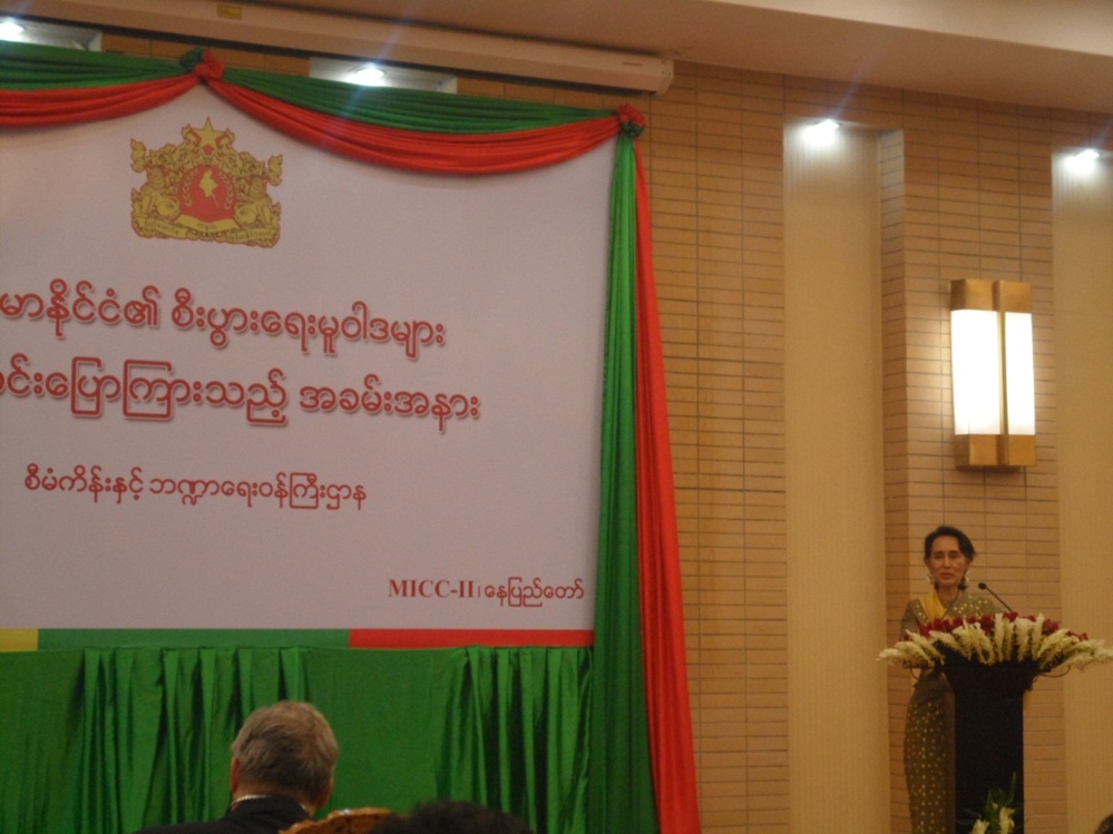 본 발표회에 직접 나선 미얀마 국가 자문역(State Council) 아웅산 수치 여사는 미얀마 신정부는 ‘민족화합을 기반으로 한 균형 잡힌 경제성장’을 목표로 경제 정책을 펼쳐나갈 것이라고 언급했다.