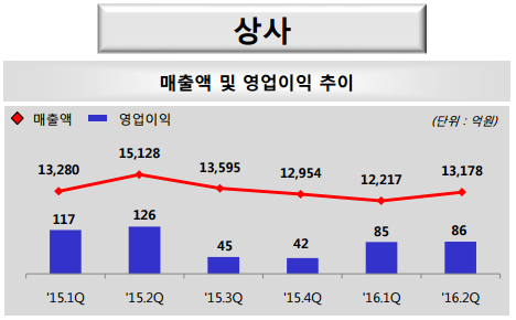또한 철강 판매량뿐만 아니라 SK네트웍스 상사 부문의 전체 매출액이 1분기 1조2,217억원에서 2분기 1조3,178억원으로 오른 것으로 파악됐다.