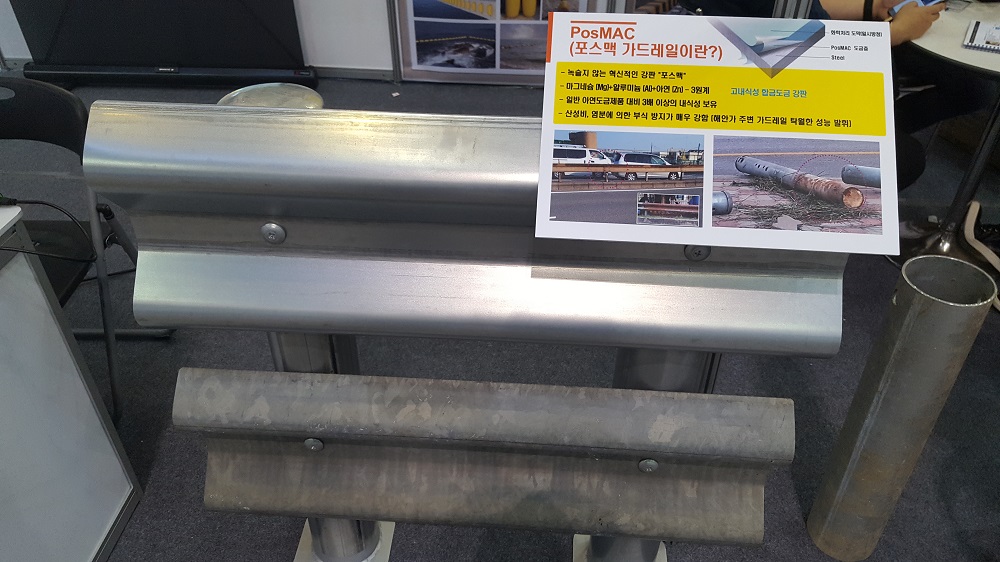 도로안전시설 제조업체인 금성산업(대표 채종술)이 국제철강금속산업전(SMK2016)에서 포스맥으로 만든 가드레일을 선보였다.