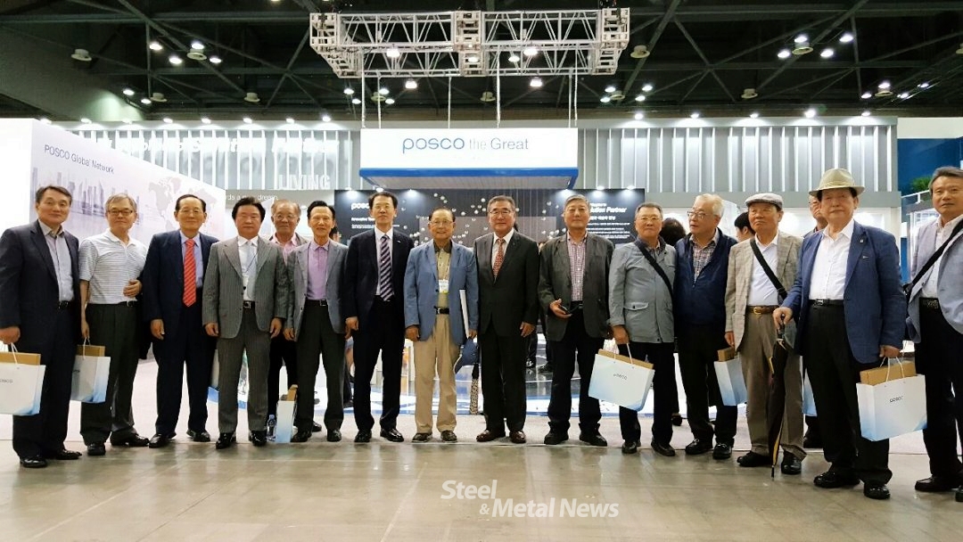 정명식 전(前) 포스코 회장을 비롯한 포스코중우회 회원 40여명이 27일부터 나흘 간 경기도 고양시 킨텍스 전시장에서 진행되고 있는 '2016 국제철강금속산업전'을 찾아 철강ㆍ금속산업의 발전상을 살폈다.