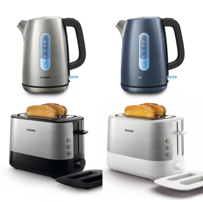 필립스코리아는 스테인리스 스틸 소재로 만든 무선 주전자와 토스터를 출시했다.