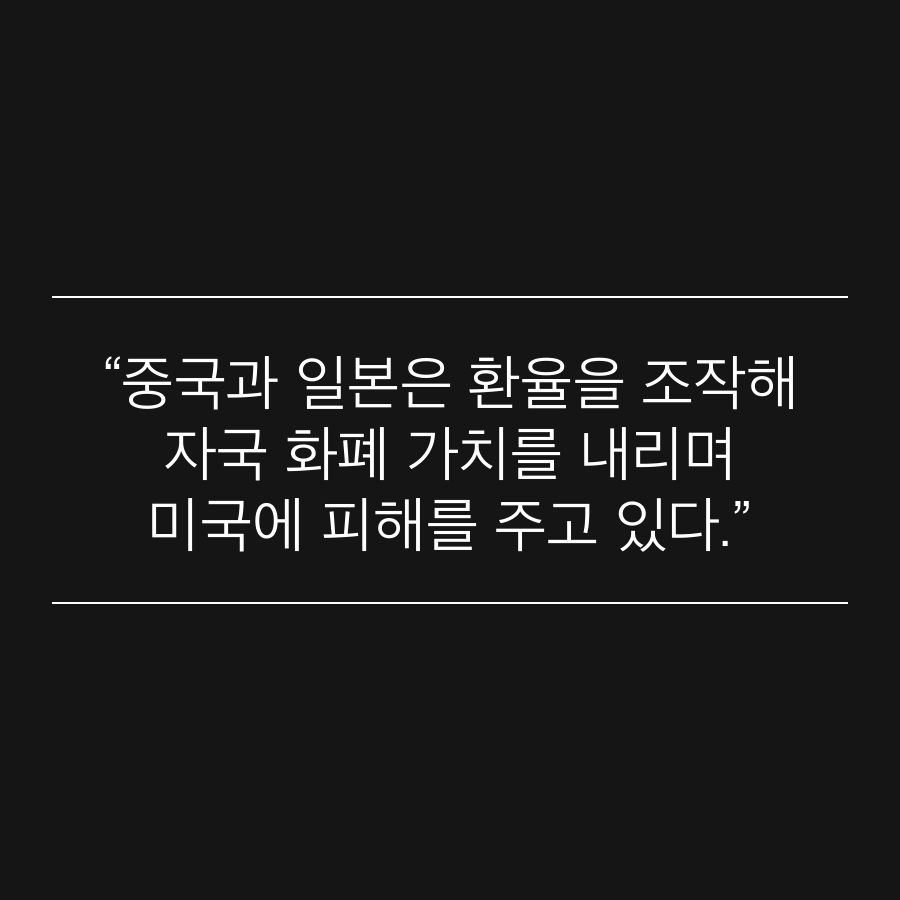 “중국과 일본은 환율을 조작해 자국 화폐 가치를 내리며 미국에 피해를 주고 있다.”