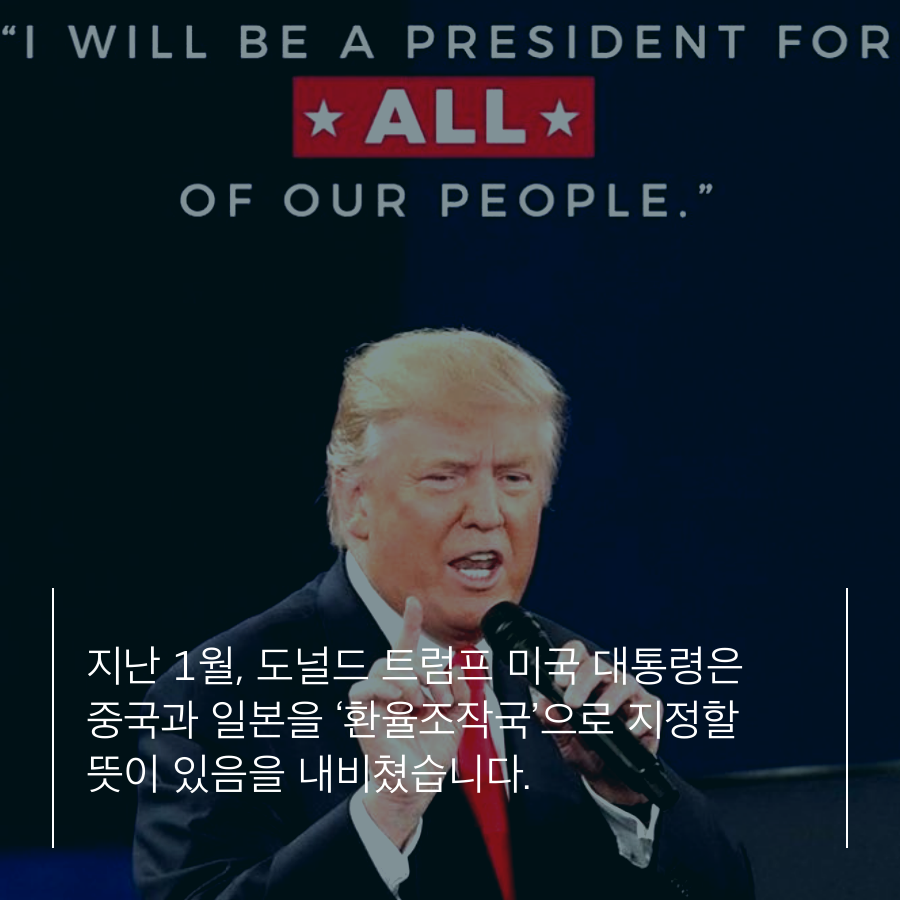 지난 1월, 도널드 트럼프 미국 대통령은 중국과 일본을 ‘환율조작국’으로 지정할 뜻이 있음을 내비쳤습니다.