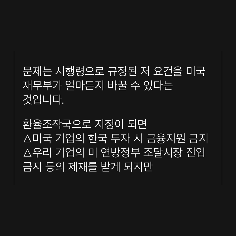 문제는 시행령으로 규정된 저 요건을 미국 재무부가 얼마든지 바꿀 수 있다는 것입니다.