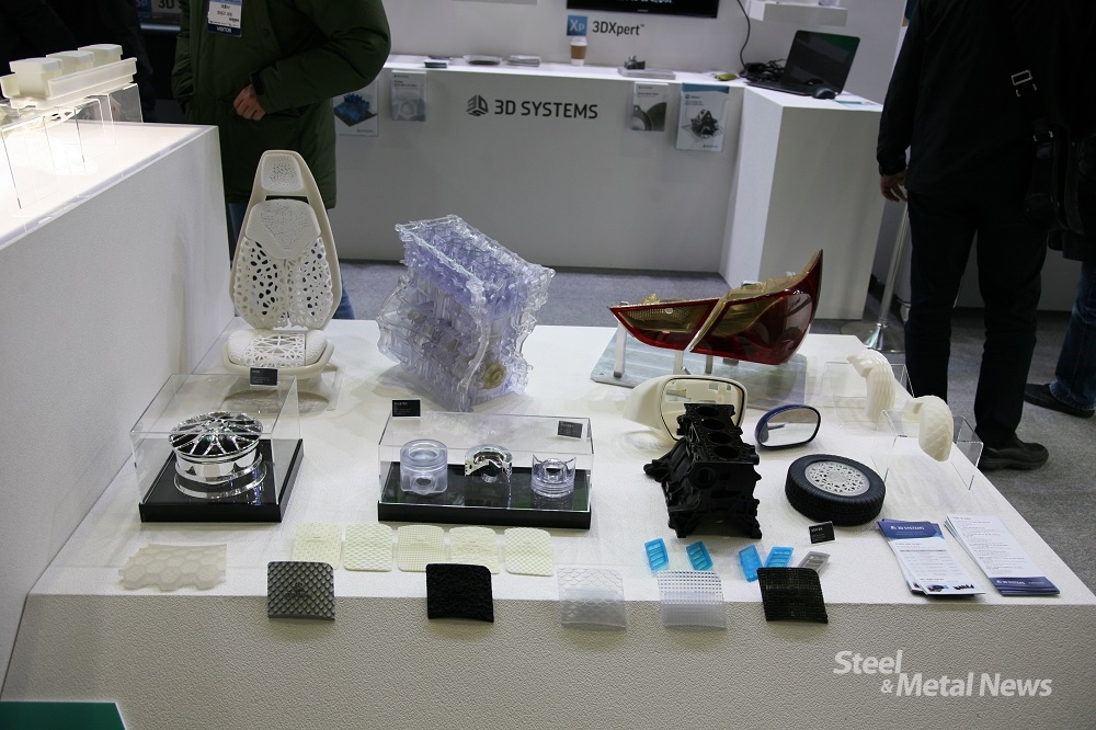 (주)쓰리디시스템즈코리아 백소령 본부장은 “이번 전시회를 위해 플라스틱프린터와 금속프린터를 활용한 시제품을 직접 제작했다. 특히, 거미로봇과 춤추는 로봇 등을 처음으로 제작하고, 자동차 엔진, 타이어, 피스톤헤드, 램프, 실린더 블록 등 기존에 3D프린팅을 활용하여 제작하던 제품 외에도 의자와 같은 자동차 내장재도 처음으로 제작했다”고 밝혔다.