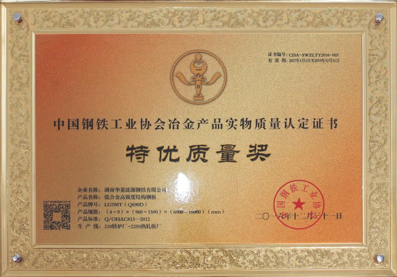 지난 1월 10일 북경에서 열린 중국철강공업협회 2017년 이사회에서 연원강철의 80kg급 고장력강인 연원강철의 LG700T가 중국철강공업협회(CISA)주관 Quality Award 수상자로 선정됐다.