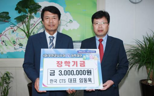 신호등 주, 도로의 난간, 어린이보호구역 전광판 제조업체 한국CTS(대표 임동욱) 지역인재 육성에 써 달라며 부안군 나누미근농장학재단에 장학금 300만원을 기탁했다.