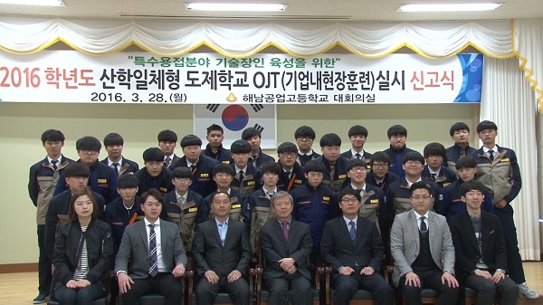 해남공고는 용접 분야의 맞춤형 인재를 양성하기 위해 올해 산학일체형 도제학교를 시작했으며 대불산업단지 내에 위치한 기업들과 협력해 학생들이 기업에서는 현장 실무 교육을, 학교에서는 이론 교육을 받을 수 있도록 제도를 운영하고 있다.