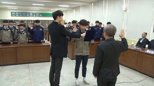 2016년도 해남공고 산학일체형 도제학교 ‘기업 내 현장 훈련(OJT)’ 실시 신고식1 / 사진: 해남공업고등학교