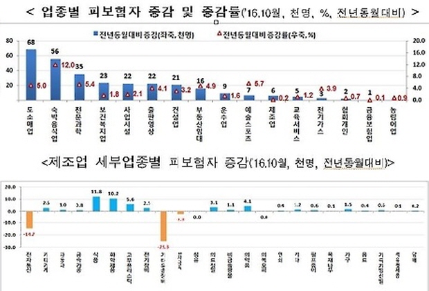 고용부 관계자는 “조선업 실업자 급증 등으로 제조업 취업자 증가 폭이 계속 떨어지고 있다”며 “다만 저가항공 이용객 증가와 수출 호조 등으로 항공운송, 식품, 화학 등에서 고용이 늘어난 것은 긍정적”이라고 말했다.