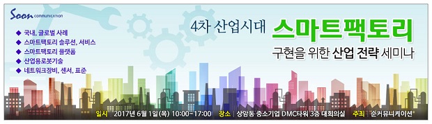 순커뮤니케이션이 6월 1일 상암동 중소기업 DMC타워 3층 대회의실에서 ‘스마트팩토리 구현을 위한 산업 전략 세미나’를 개최한다고 밝혔다.