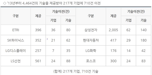 한편, KIAT는 대기업 개방기술의 이전 활성화를 통해 대·중소기업의 동반성장 협력 체계를 구축하게 되면서, 중소·벤처기업의 기술 경쟁력 확보에 기여할 것으로 기대하고 있다. 특히 올해 포스코, 삼성전자 이외에도 다른 대기업으로 기술나눔을 지속적으로 확대해 나아갈 예정이다.