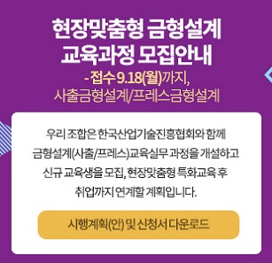 한국금형공업협동조합(이사장 박순황)이 9월 18일까지 ‘현장맞춤형 금형설계 교육과정’에 참가할 청년 미취업자를 모집한다.