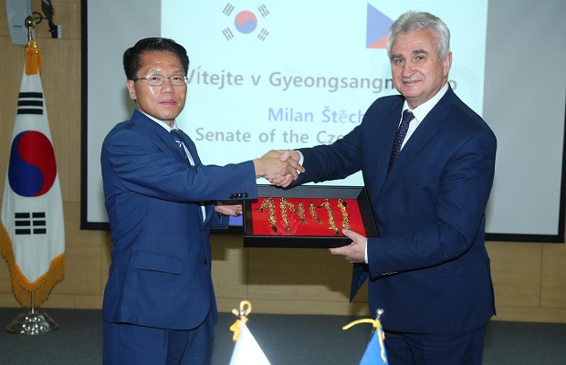 경상남도는 지난 1일 오전 11시 30분 도정회의실에서 한경호 경남도지사 권한대행과 밀란 슈테흐(MILAN ŠTĚCH) 체코 상원의장이 교역·투자 증진 등 경제협력 확대 방안을 논의했다고 밝혔다.