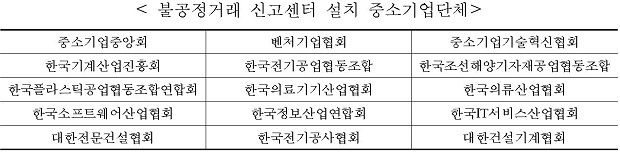 불공정거래 피해, 중소기업단체 통해 신고 가능