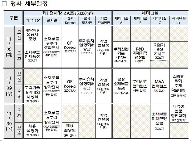 또한 소재부품·뿌리산업 종사자들 간의 기술 및 사업교류를 위한 포럼, 토크 콘서트, 컨퍼런스, 상담회 등의 다양한 프로그램들이 준비돼 있다.
