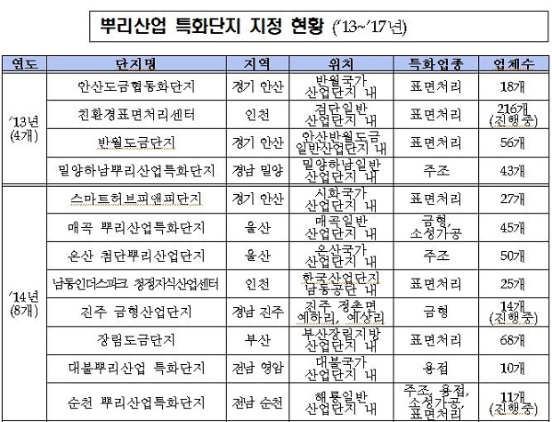 올해 4개 단지가 추가됨에 따라 전국의 뿌리산업 특화단지는 총 25개로 확대했으며, 입주기업도 967개 회사로 확대한다.