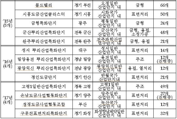 경북 고령, 경기 양주 은남도금, 부산 청정도금, 경기 화성 구문천표면처리단지 추가 지정