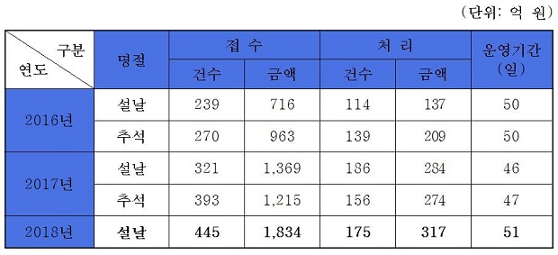 이번 설 명절에 지급 조치된 317억 원은 지난해 설 명절(284억 원)에 비해 12% 증가한 것으로, 이는 중소기업들이 신고센터를 보다 적극적으로 활용함에 따라 신고건수가 지난해보다 증가했고, 신고센터 운영기간도 확대됐기 때문인 것으로 분석된다.