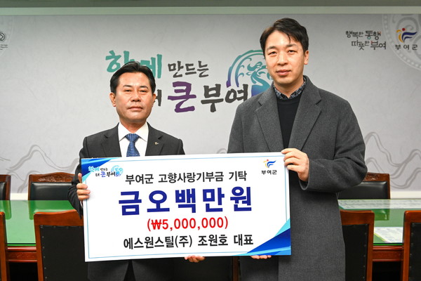 에스원스틸 조원호 대표가 부여군에 고향사랑기부금 1년 최고 한도액인 500만원을 기탁했다고 전했다.
