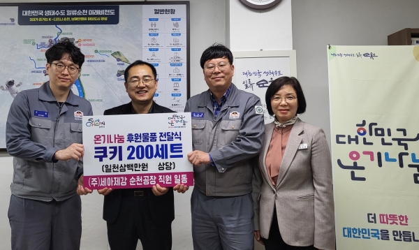 종합강관 제조업체 세아제강 순천공장(공장장 류청)은 순천시에 쿠키 200세트(1,300만원 상당)를 기부했다고 밝혔다.