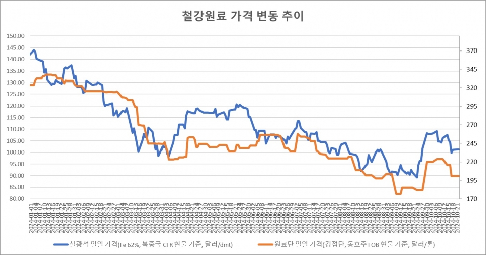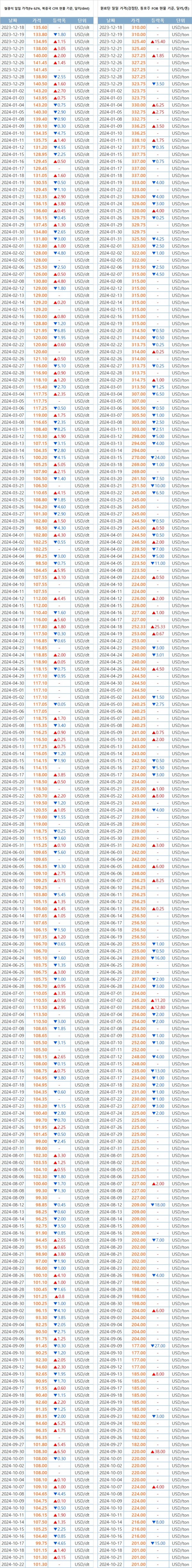 [표] 일일 철강원료 가격 동향 (10월 22일)