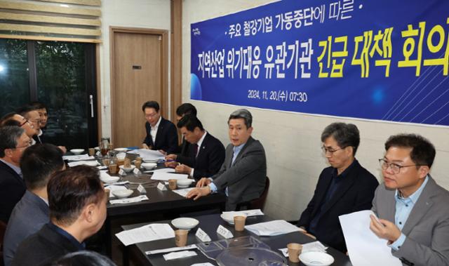 이강덕 포항시장은 20일 오전 7시, 포항시 남구에서 전익현 포항철강관리공단이사장, 김일만 포항시의회 의장, 나주영 포항상공회의소 회장, 김진하 고용노동부 포항지청장 등 지역 유관 기관과 현대제철, 포스코 포항제철소, 동국제강, 세아제강 등 철강업계 관계자 등과 ‘지역산업 위기 대응 유관기관 긴급 대책 회의’를 열었다.