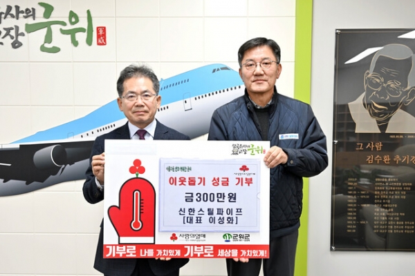 이성화 신한스틸파이프 대표는 최근 군위군을 방문하고 이웃돕기 성금 300만 원을 군위군에 기부했다.