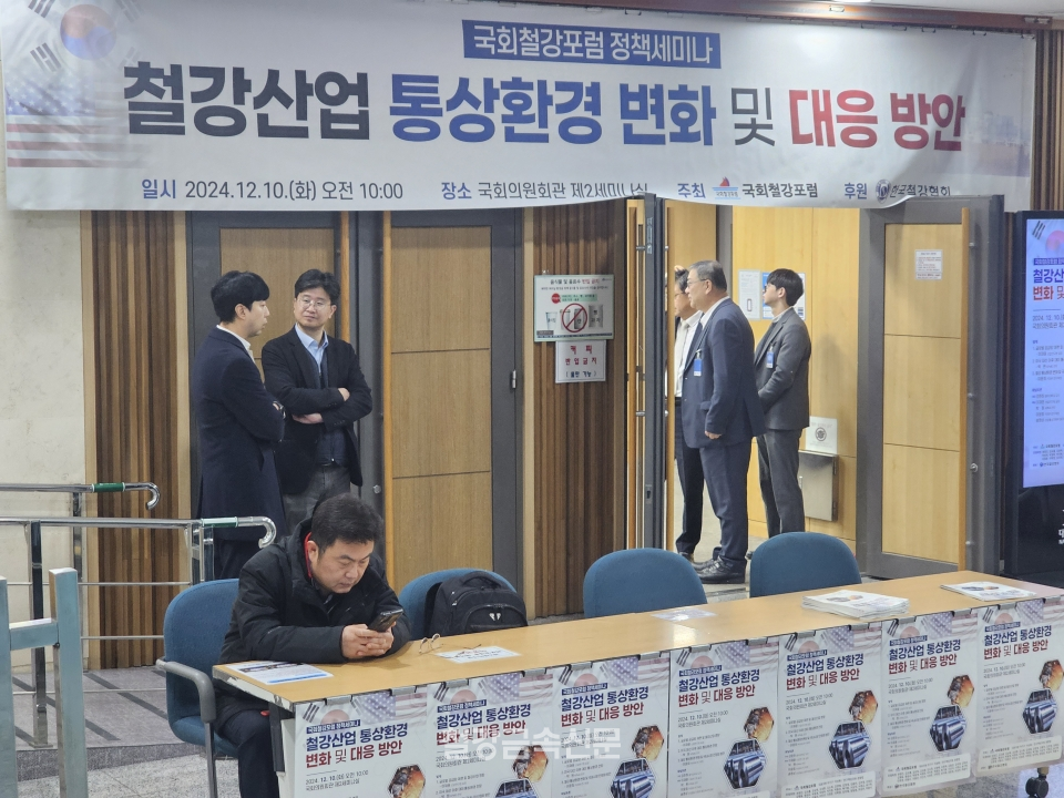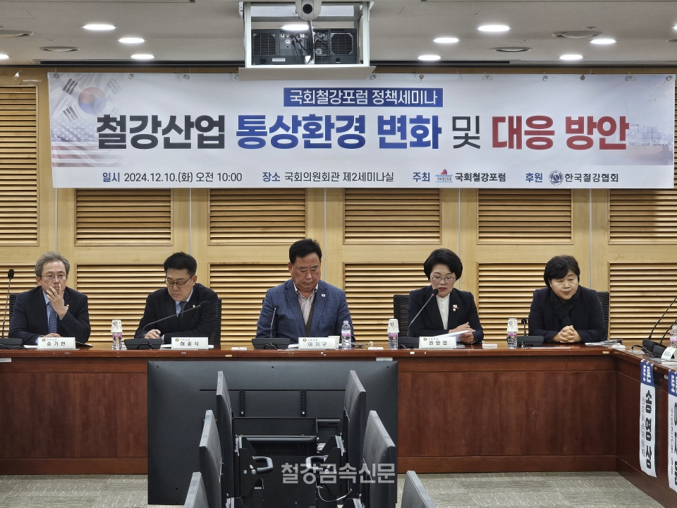 국회철강포럼(공동대표 어기구, 이상휘)이 올해 마지막 정책세미나를 개최했다. 권향엽 포럼연구책임의원 주최로 열린 이번 세미나에선 철강 통산 환경에 관한 내용이 주를 이뤘다.