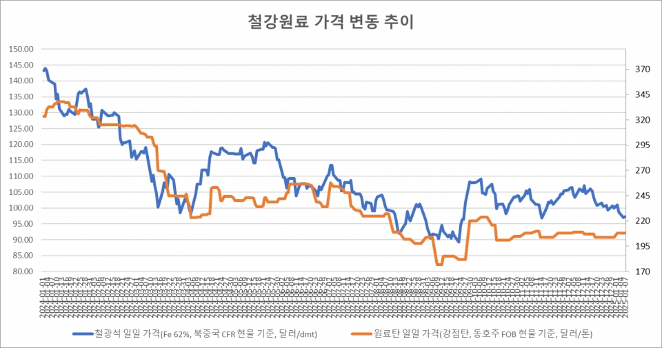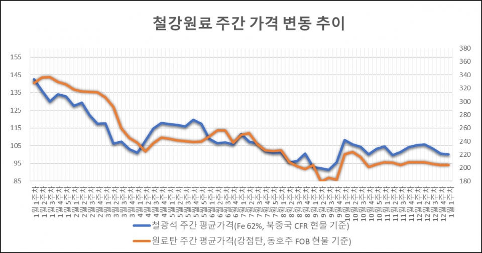 [표] 일일 철강 원료 가격 동향(1월 7일)
