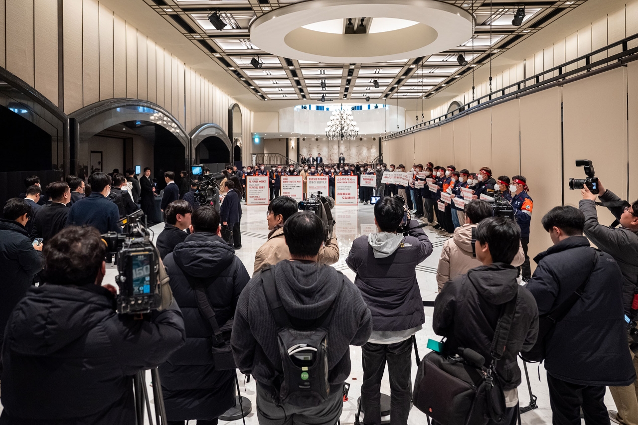 지난 1월 23일 서울 용산구에 위치한 그랜드 하얏트 호텔에서 고려아연과 영풍·MBK간의 임시주총이 열렸다. 당초 주총은 오전 9시에 진행될 것으로 공표됐으나, 중복 주식 집계 차질로 약 6시간 정도 개회가 지연됐다. 이날 주총 진행은 행사에 불참한 최윤범 고려아연 회장을 대신해 박기덕 고려아연 사장이 맡아 진행했다.